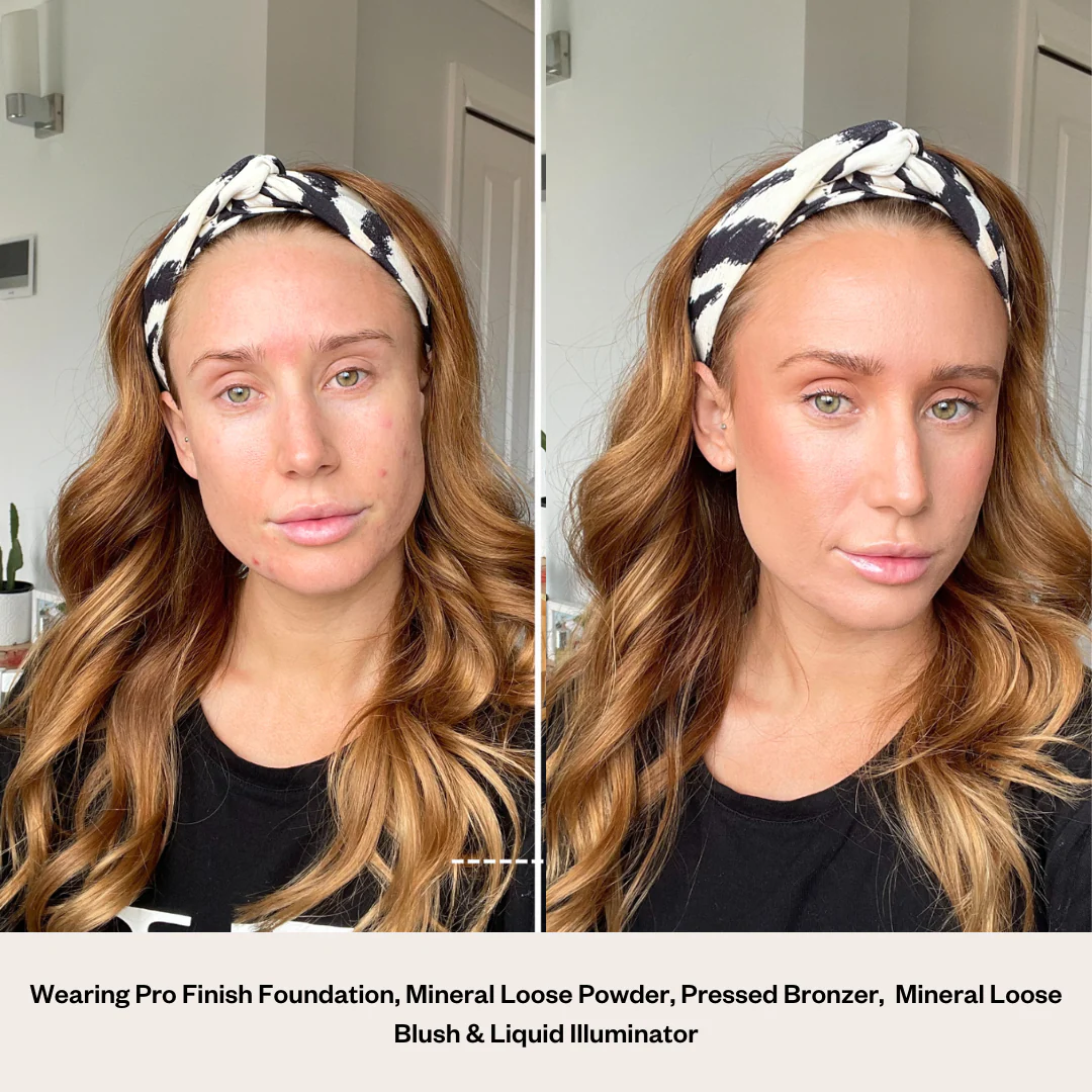 - Use the Contour Brush to sculpt and apply Pressed Bronzer, enhancing natural contours and glow.